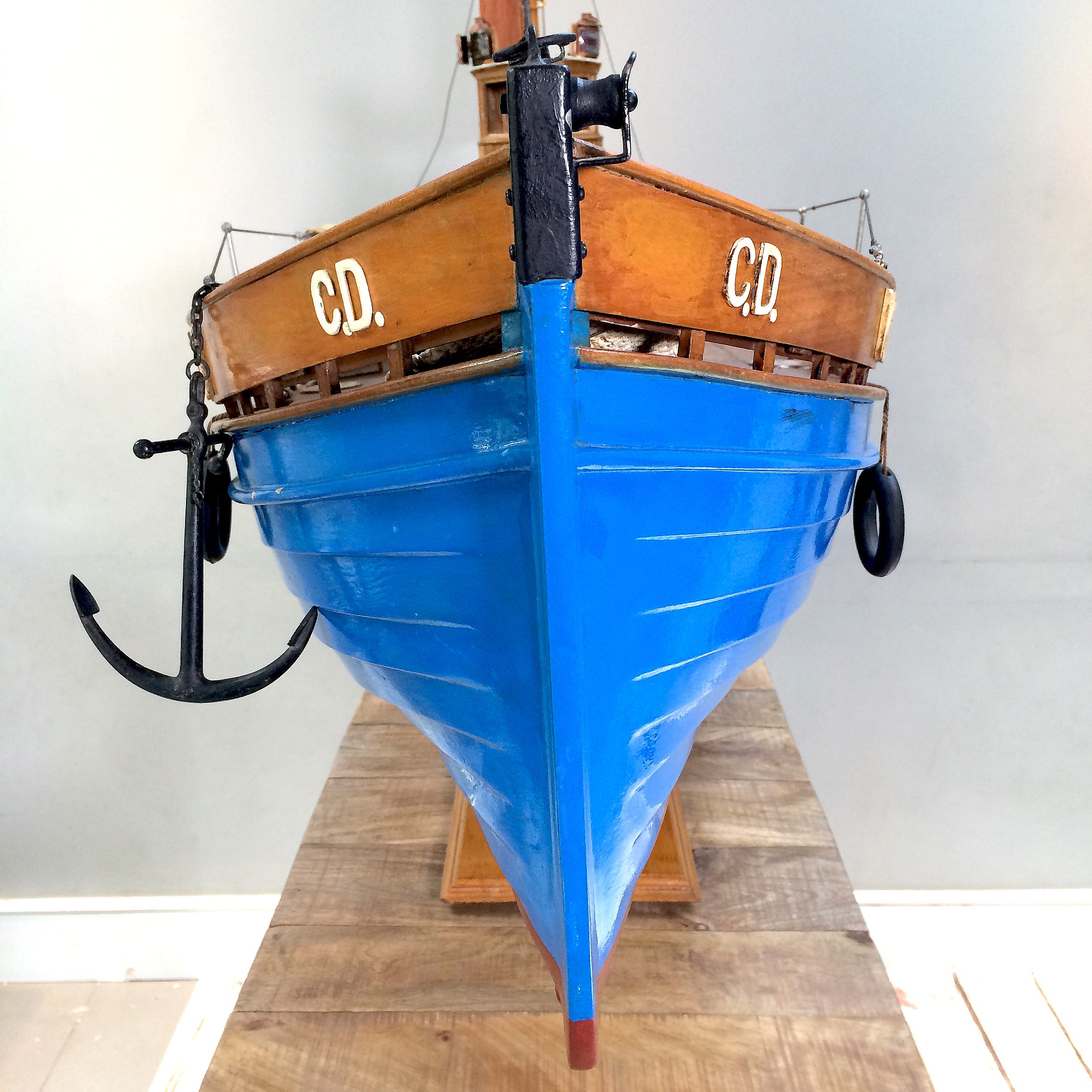 In immaculate condition, this model boat comes complete with plaque, and original replica on board fishing paraphernalia like fishing net, anchor, metal buckets, anchor, life buoy etc.