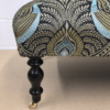 Our Tamsin peacock chaise longue is pictured here in a large size with black painted legs and gold castors.